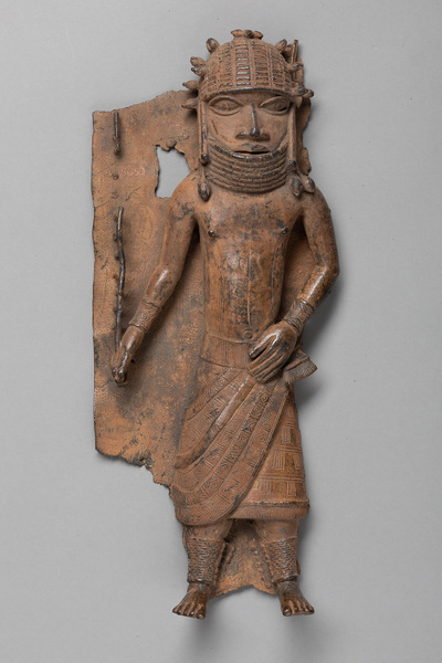 Diese Reliefplatte: Würdenträger ist Teil der historischen Sammlungen aus dem Königreich Benin im heutigen Nigeria. 1897 wurde das Königreich erobert und dessen Oba (König) Ovonramwen ins Exil verbannt. Die aus dem Königspalast geraubten Kunstschätze wurden anschließend über den Kunstmarkt verkauft, um die Eroberung rückwirkend zu finanzieren. Viele dieser Objekte sind heute Teil europäischer Sammlungen.