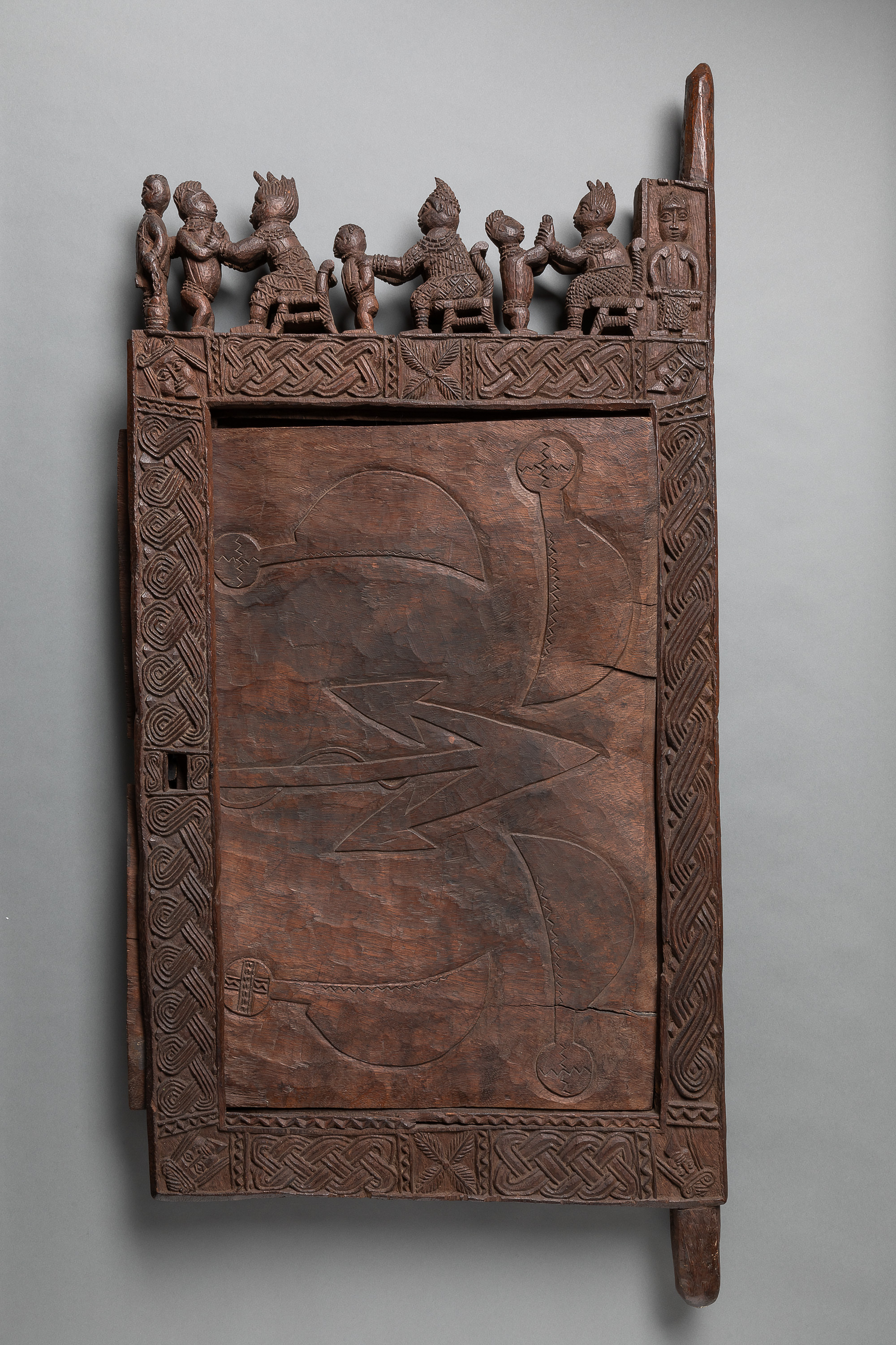 Diese Holztür ist Teil der historischen Sammlungen aus dem Königreich Benin im heutigen Nigeria. 1897 wurde das Königreich erobert und dessen Oba (König) Ovonramwen ins Exil verbannt. Die aus dem Königspalast geraubten Kunstschätze wurden anschließend über den Kunstmarkt verkauft, um die Eroberung rückwirkend zu finanzieren. Viele dieser Objekte sind heute Teil europäischer Sammlungen. Dieses Holztür konnte auf Basis seiner Provenienzkette in direkten Zusammenhang mit dem Überfall auf das Königreich Benin 1897 gebracht werden.