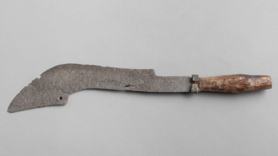 Dieses Haumesser ist Teil der historischen Sammlungen aus dem Königreich Benin im heutigen Nigeria. 1897 wurde das Königreich erobert und dessen Oba (König) Ovonramwen ins Exil verbannt. Die aus dem Königspalast geraubten Kunstschätze wurden anschließend über den Kunstmarkt verkauft, um die Eroberung rückwirkend zu finanzieren. Viele dieser Objekte sind heute Teil europäischer Sammlungen.