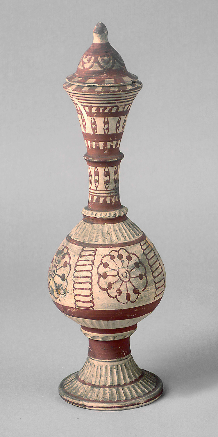 Flasche: H. 30 cm, Dm. 11 cm, H. mit Deckel 36 cm