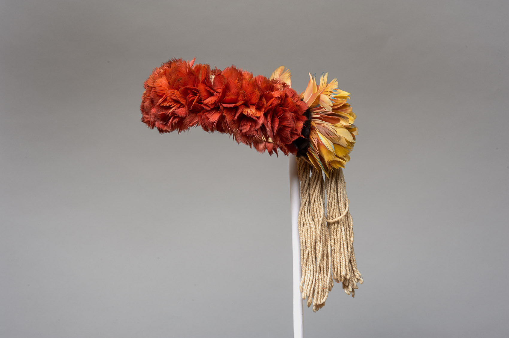 Baumwolle, Körperfedern des Hellroten Aras, Oberflügelfedern des Gelbbrustaras, Körperfedern des Hokkohuhns