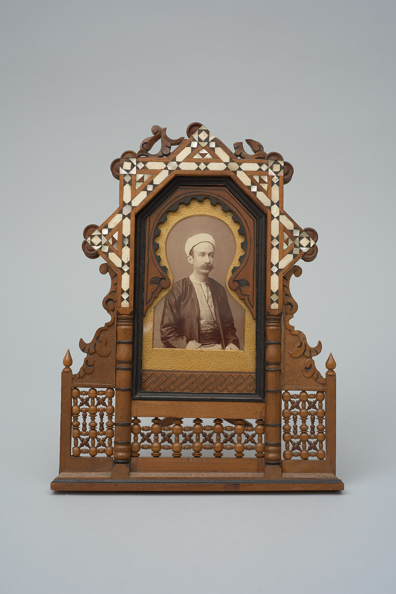 Holz, Perlmutt, Bein, Glas, Albuminabzug