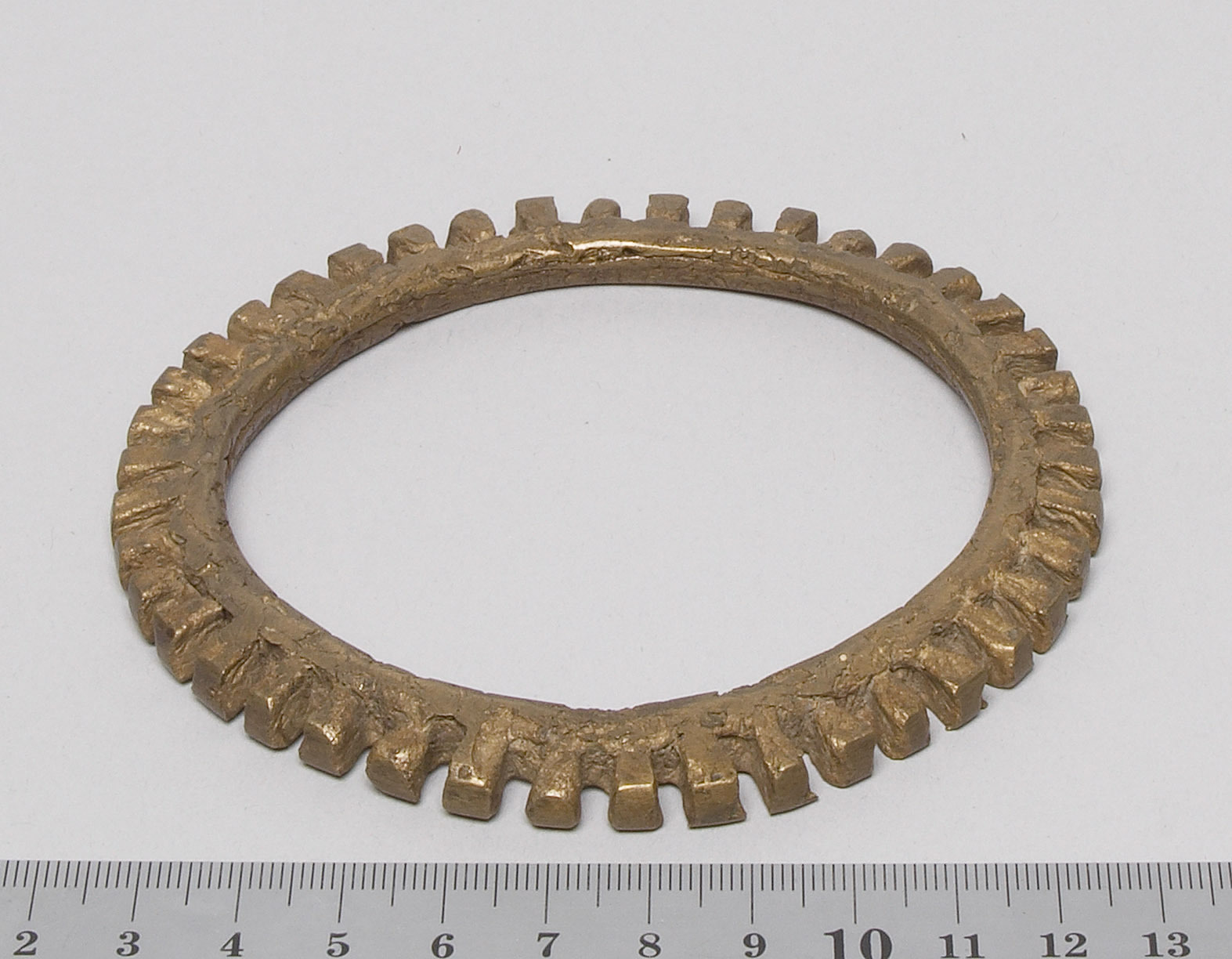 Dieser Messingarmreif wurde nach dem Guss nicht weiter bearbeitet. Der Sammler hat ihn zur Dokumentation des traditionellen Schmiedehandwerks erworben.