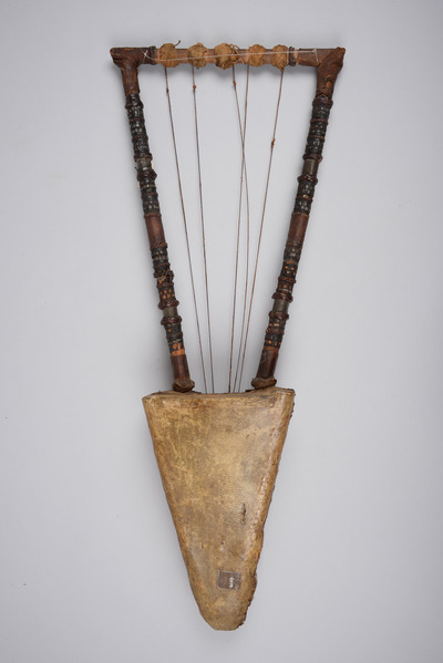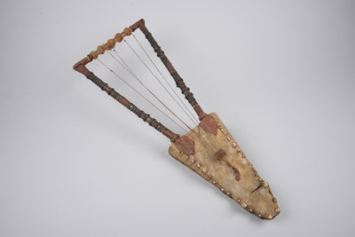Unterkiefer eines Krokodils, Holz, Leder, Pflanzenfaser, Metall, Textil