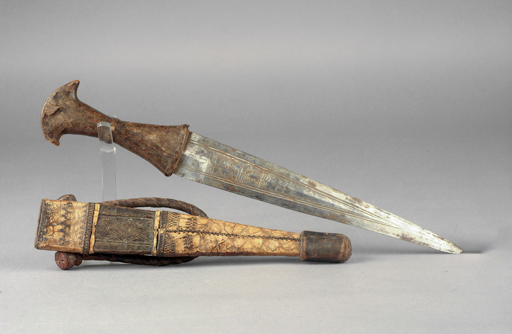 l. 34,5 cm × B. 5,5 cm (Dolch)Scheide: L. 21,5 cm, B. max 4,3 cm