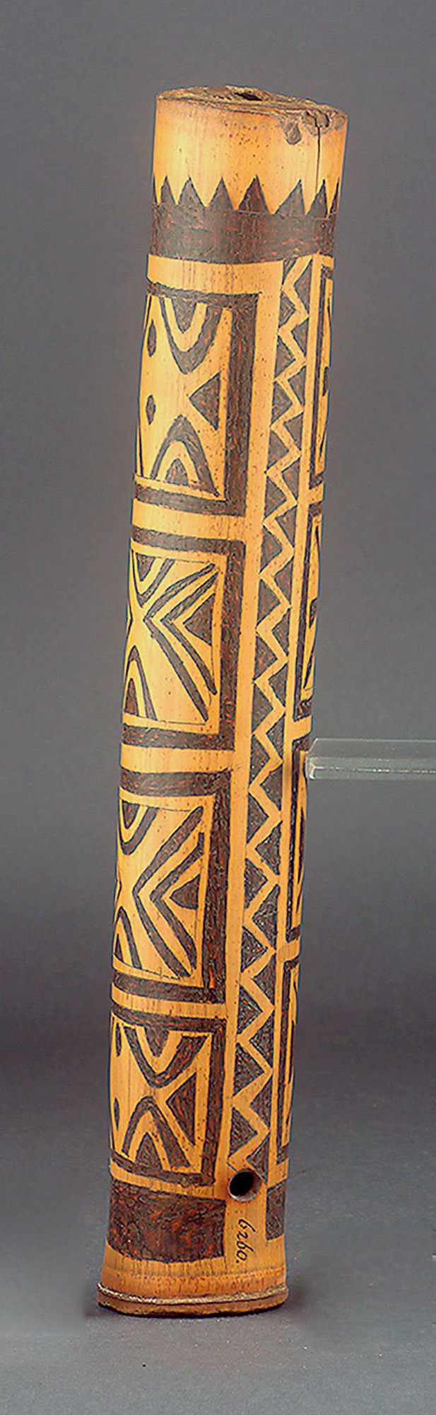 Bambusrohr, Rußfarbe / Ritzzeichnungen