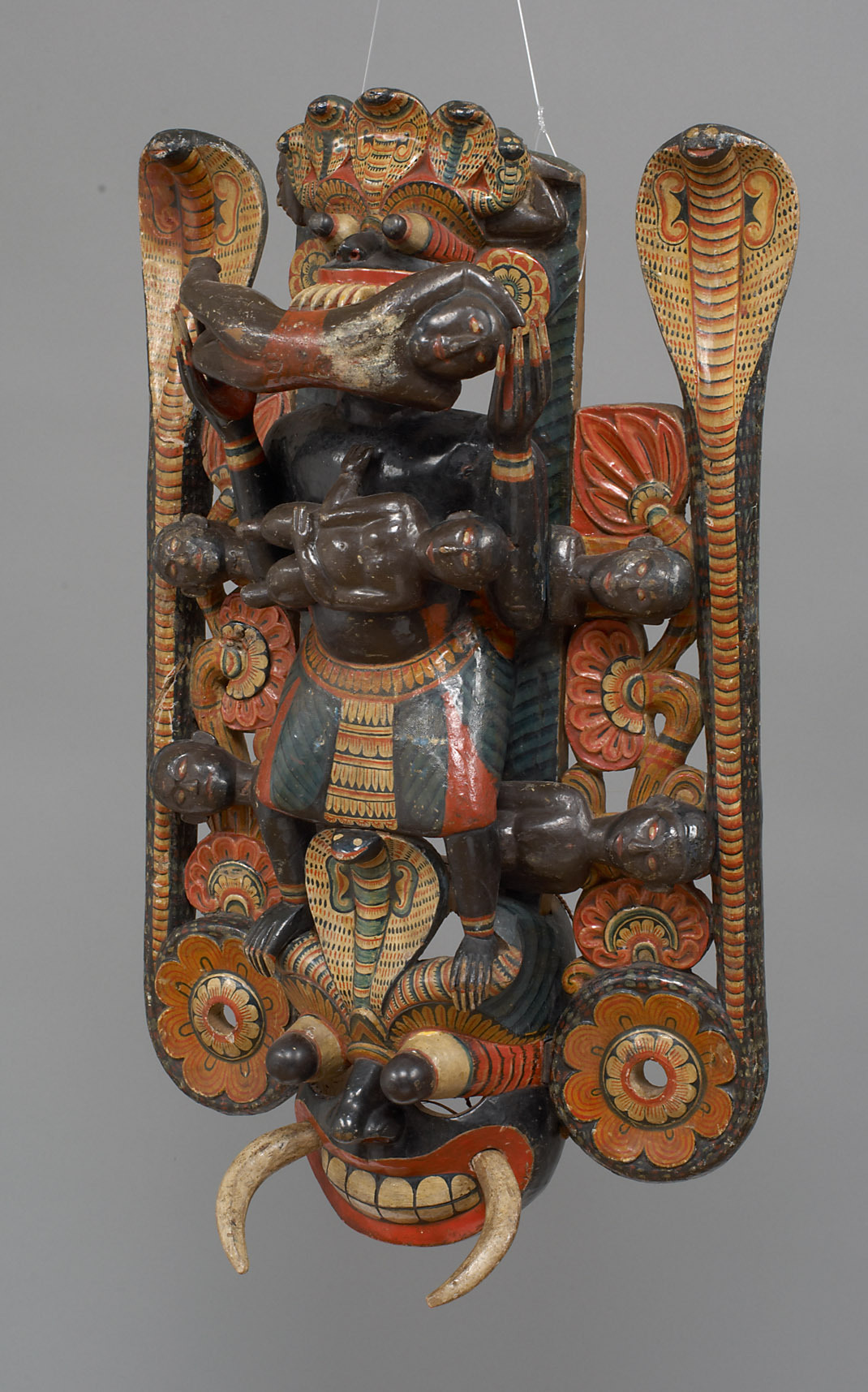 Die dargestellte Gottheit nimmt bei sakralen Tänzen vom Körper des Trägers der Maske Besitz und erlangt so physische Anwesenheit. Hier wird die Szene lebendig, in der Vishnu in seiner Erscheinung als Narasingha den Dämonenkönig Hiranya Kashipu tötet. Das Ritual zur Bannung schädlicher Einflüsse zeigt Einflüsse alter volksreligiöser Vorstellungen.