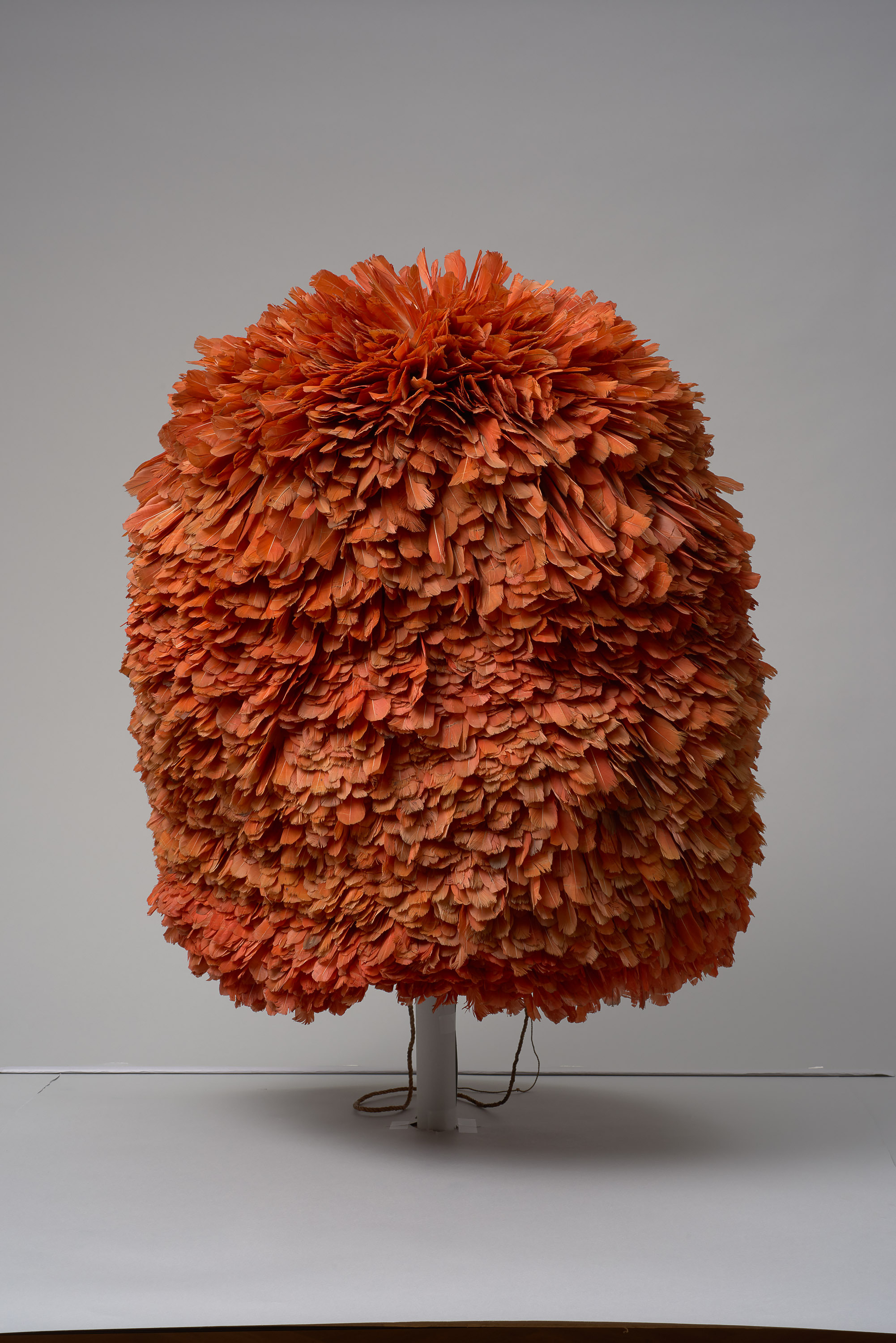 Federn (Graupapagei, Riesenturako?), pflanzliche Fasern, Tierhaut, Gras