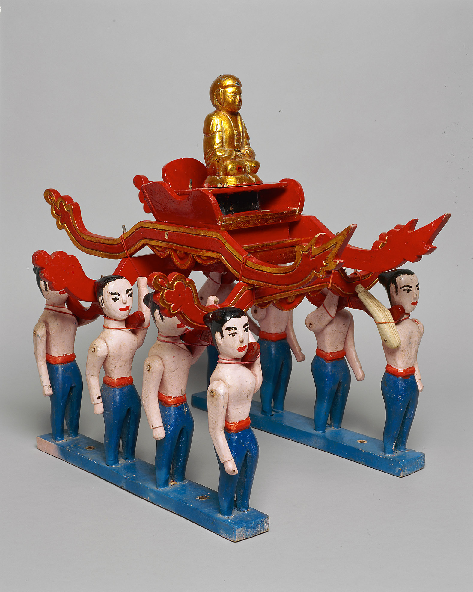 Die Figur des Gründers des Wasserpuppenspiels –Tu Dao Hanh – wird in einer von Musikern begleiteten Prozession auf einem Thron getragen. Tu Dao Hanh hat im Glauben der lokalen Bevölkerung von 1010 bis 1225 gelebt und wirkte in drei Erscheinungen auf der Welt: als mit magischen Kräften ausgestatteter Heiler, als buddhistischer Mönch und als König Ly Than Tong. Die Prozession ist von einem Lied begleitet: