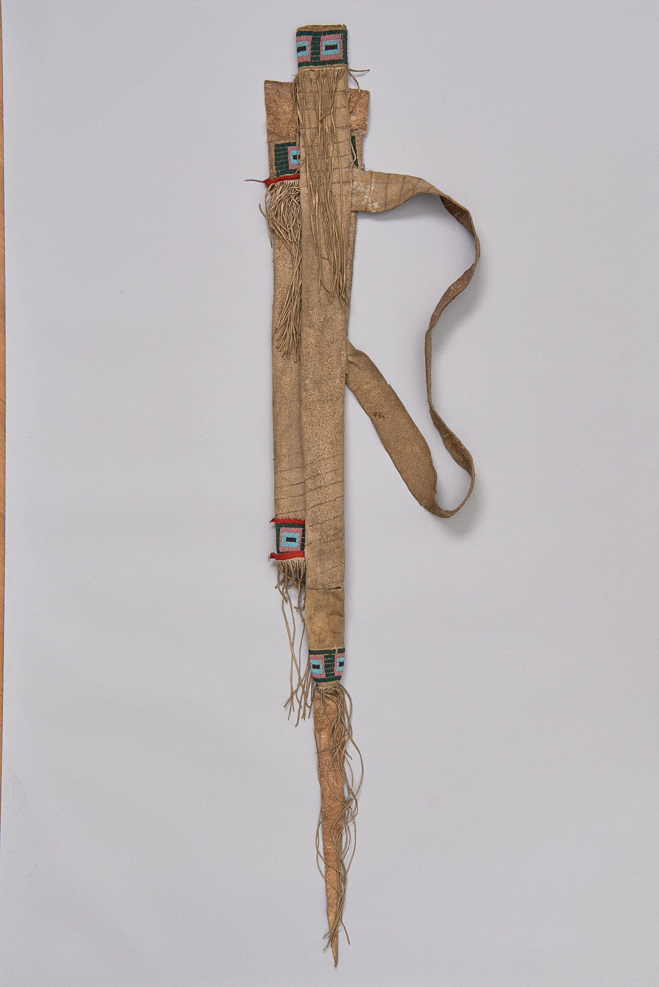 Leder, Glasperlen, Textil, Sehnen, Federkiel, Pigment