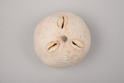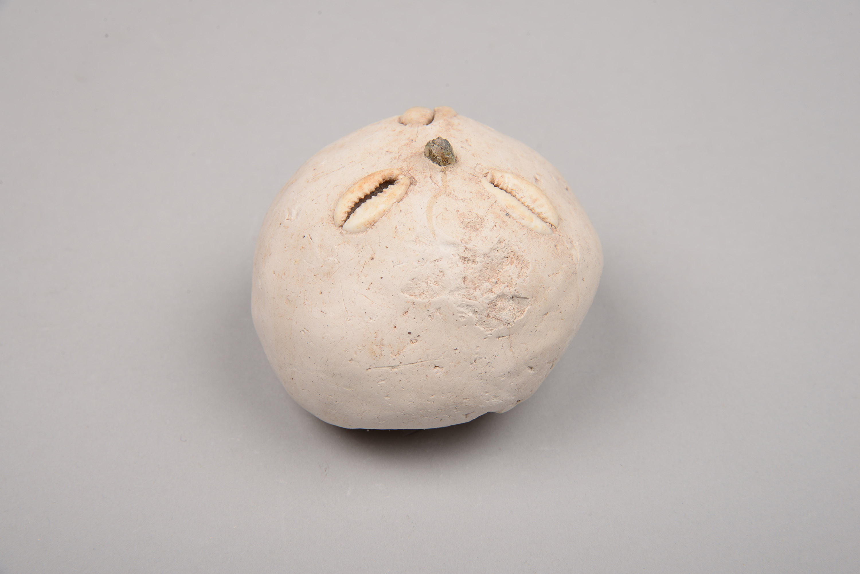 Geschnitzter Kalk, Kaurischnecken, Eisennagel