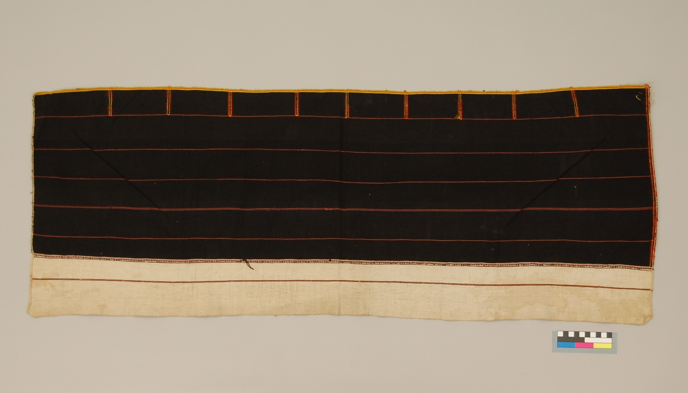 Erst ab ihrer Geschlechtsreife besaßen Naga-Mädchen Wickelröcke. Solche wie dieser hier mit seinem einfachen Muster zählten zu den ersten, die von jungen Sema-Frauen getragen wurden; derartige Kleidungsstücke blieben aber auch noch nach der Hochzeit in Verwendung.