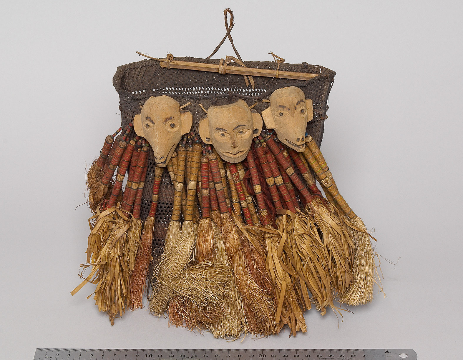 Dekorative Elemente transformierten Gegenstände des alltäglichen Gebrauchs wie zum Beispiel Körbe in Träger von sozialem Prestige, die vor allem bei zeremoniellen Anlässen präsentiert wurden. Mit den oftmals daran applizierten Affenköpfen ebenso wie mit den Grasbüscheln konnten die Besitzer ihren Mut zur Schau stellen, denn diese Attribute wurden unter Lebensgefahr nahe einem feindlichen Dorf besorgt. Auch konnte die Anzahl der Affenköpfe oder kleiner Darstellungen von Menschen auf diejenige der erbeuteten Köpfe verweisen.