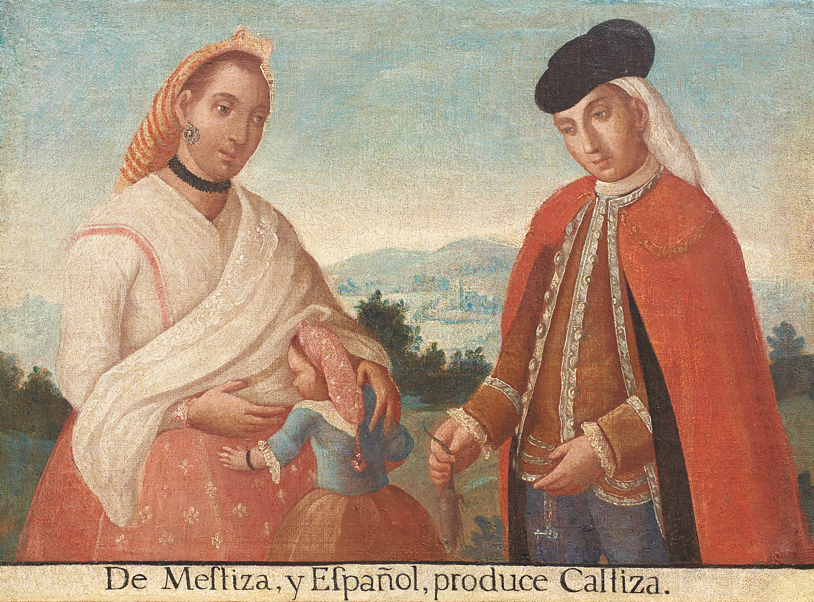 Casta. Mestizin und Spanier ergibt Kastizin (Fast-Spanier)