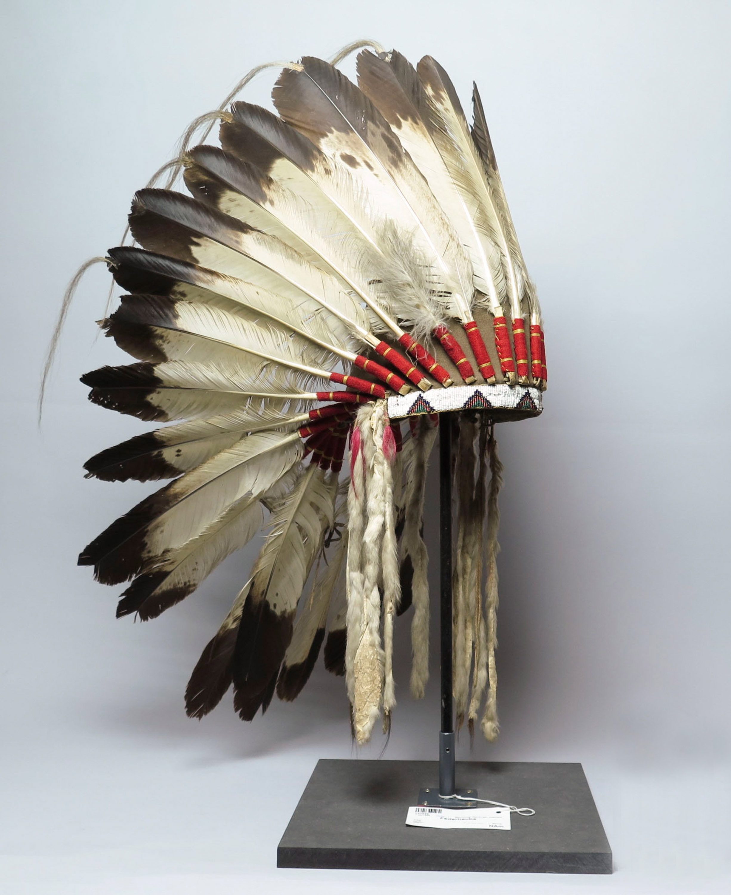 Federn, Fell, Haare, Leder, Wollfilz, Glasperlen, wachsartige Kittmasse