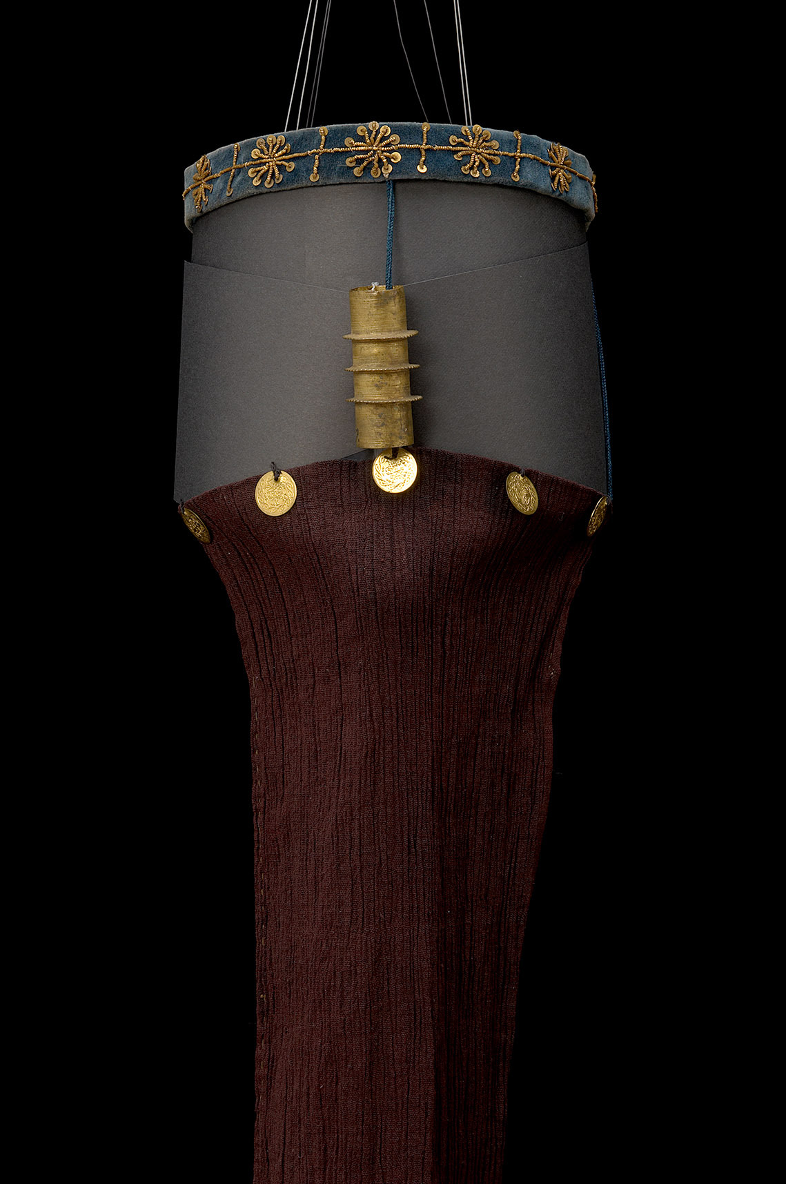 Baumwolle, Samt, Messing, Metall, osmanische Münzen, Gold
