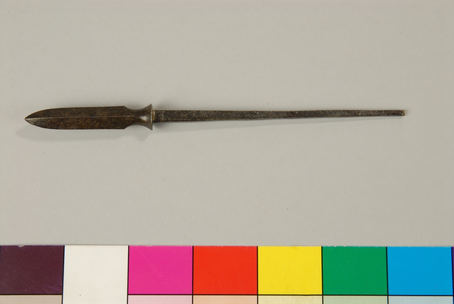Diese Pfeilspitzen wurden an die Spitze eines Pfeilschafts aus Bambus montiert, um die Durchschlagskraft zu erhöhen. Über die verschiedenen Epochen hinweg wurden Pfeilspitzen aus diversen Materialien und in unterschiedlicher Form entwickelt. Die ältesten wurden aus Stein, Knochen, Horn oder Muscheln hergestellt und später aus Metallen, wie Kupfer und Eisen. Die Vielfalt an Formen ist beindruckend: von einfachen, dünnen und spitz zulaufenden togari-ya, über flache und breite hirane, bis hin zu karimata-ya, deren Spitze v-förmig auseinandergeht. Zudem existieren auch Pfeilspitzen, die – ähnlich einem Meißel – an der Spitze eine gerade Linie bilden. Unter den tagari-ya finden sich auch welche mit runden, dreieckigen, weidenblatt- oder steineibenblattförmigen Spitzen. Bei den hirane gibt es auch dekorative Spitzen, die mit durchbrochenen Schriftzeichen, Blumen- oder inome-Mustern verziert sind. Eine Besonderheit stellen die karimata-ya dar, an die auch rübenförmige Pfeifen montiert wurden, um beispielsweise zu Schlachtbeginn Signale zu geben. Die Herstellung von Pfeilspitzen oblag meist den Schwertschmieden, weshalb die Angeln der Pfeilspitzen häufig mit Gravuren der Schmiede versehen sind. (TI)