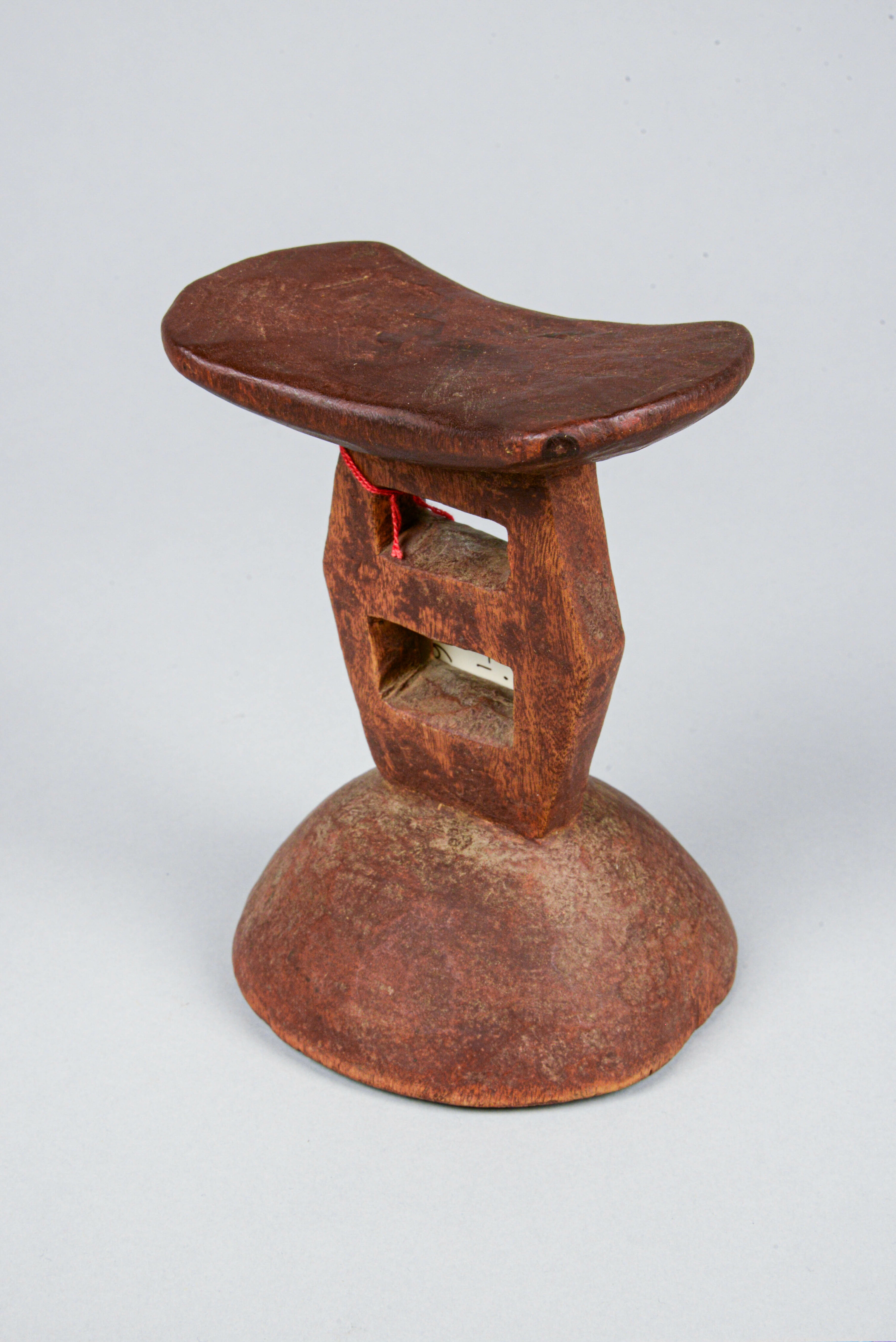 Holz (Commiphora; vermutl. C.mollis, evtl. C.multijuga, C.angolensis, C.glaucescens, C.virgata; mögl. auch C. anacardiifolia, C. discolor), aus Stammholz geschnitzt, Hämatit-Patina u.-Krusten (Fett, Staub)