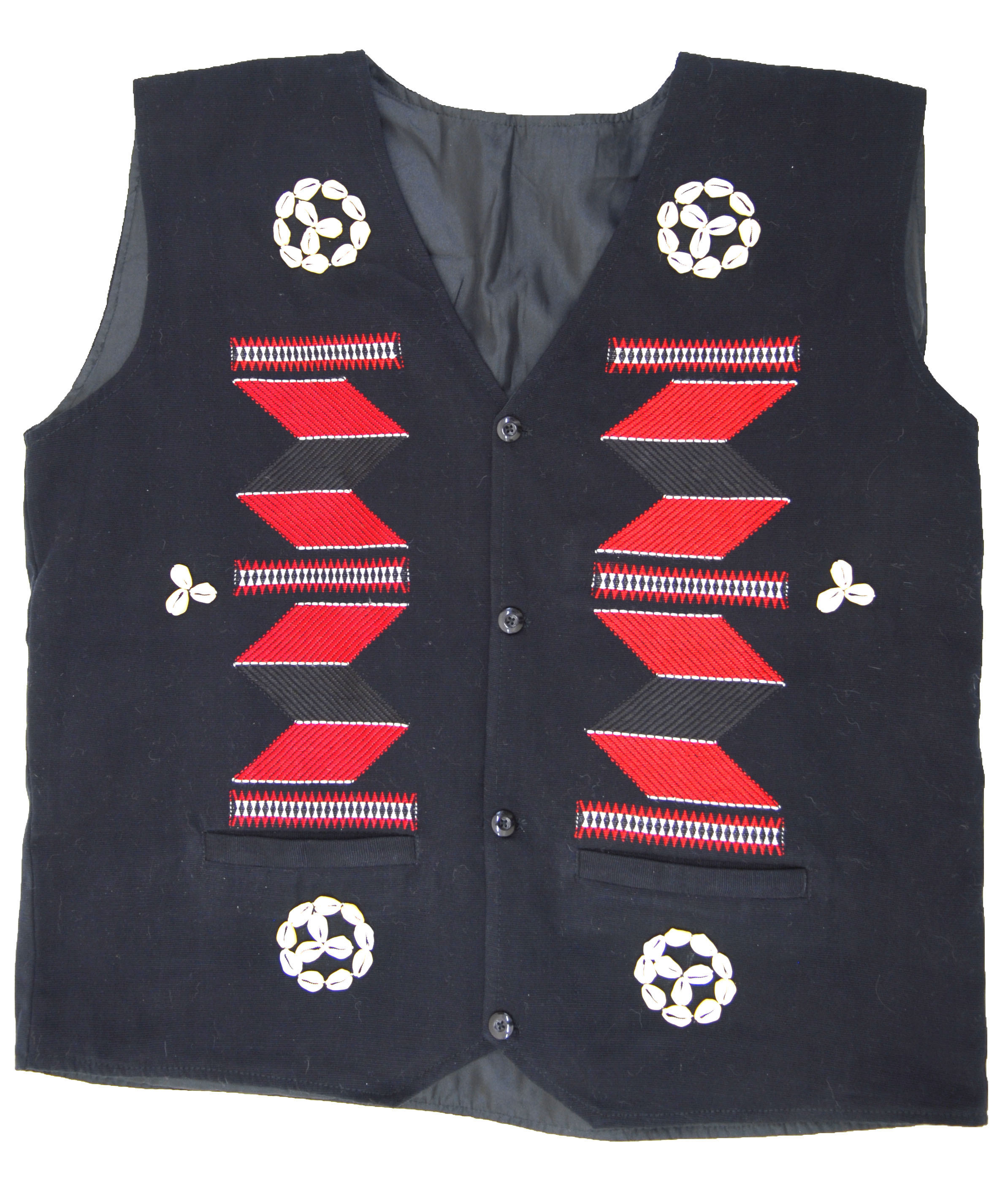 Die moderne Weste eines Mannes der Chang-Naga zeigt das Python-Motiv eines alten Körpertuches. So seltsam es auch klingen mag: Der Verlust der alten Kultur fördert gleichzeitig das traditionelle Handwerk. Während im Alltag Textilien aus moderner, meist indischer, Massenproduktion verwendet werden, sind es solche bei besonderen Anlässen getragene Kleidungsstücke, die einen wesentlichen Beitrag zur Suche nach Identität leisten. Wie immer in der Textilkunst sind es auch hier die Frauen, die den Ausgleich zwischen Tradition und Moderne herstellen, wenn sie für ihre Männer solche Mode entwerfen und produzieren.