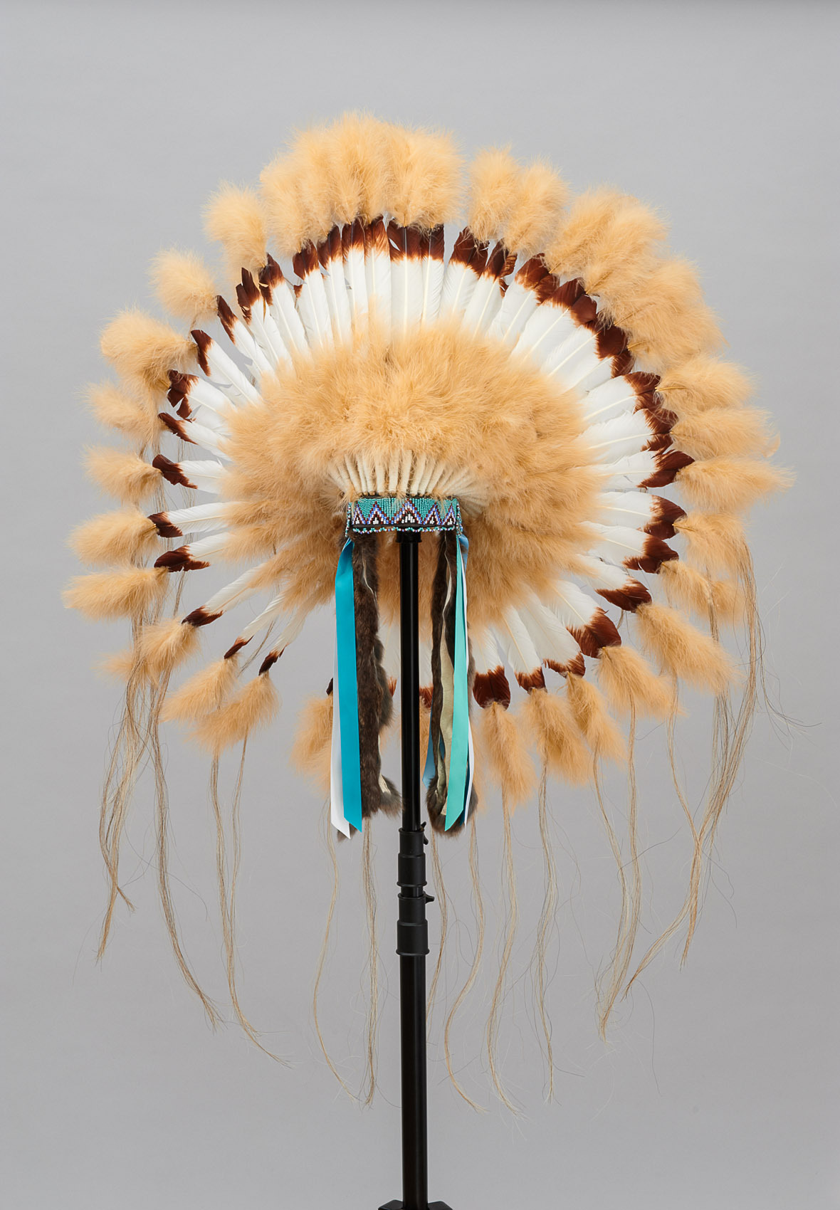 Federn, Leder, Pferdehaare, Fell, Kunststoff, Glasperlen, Textil, Filz