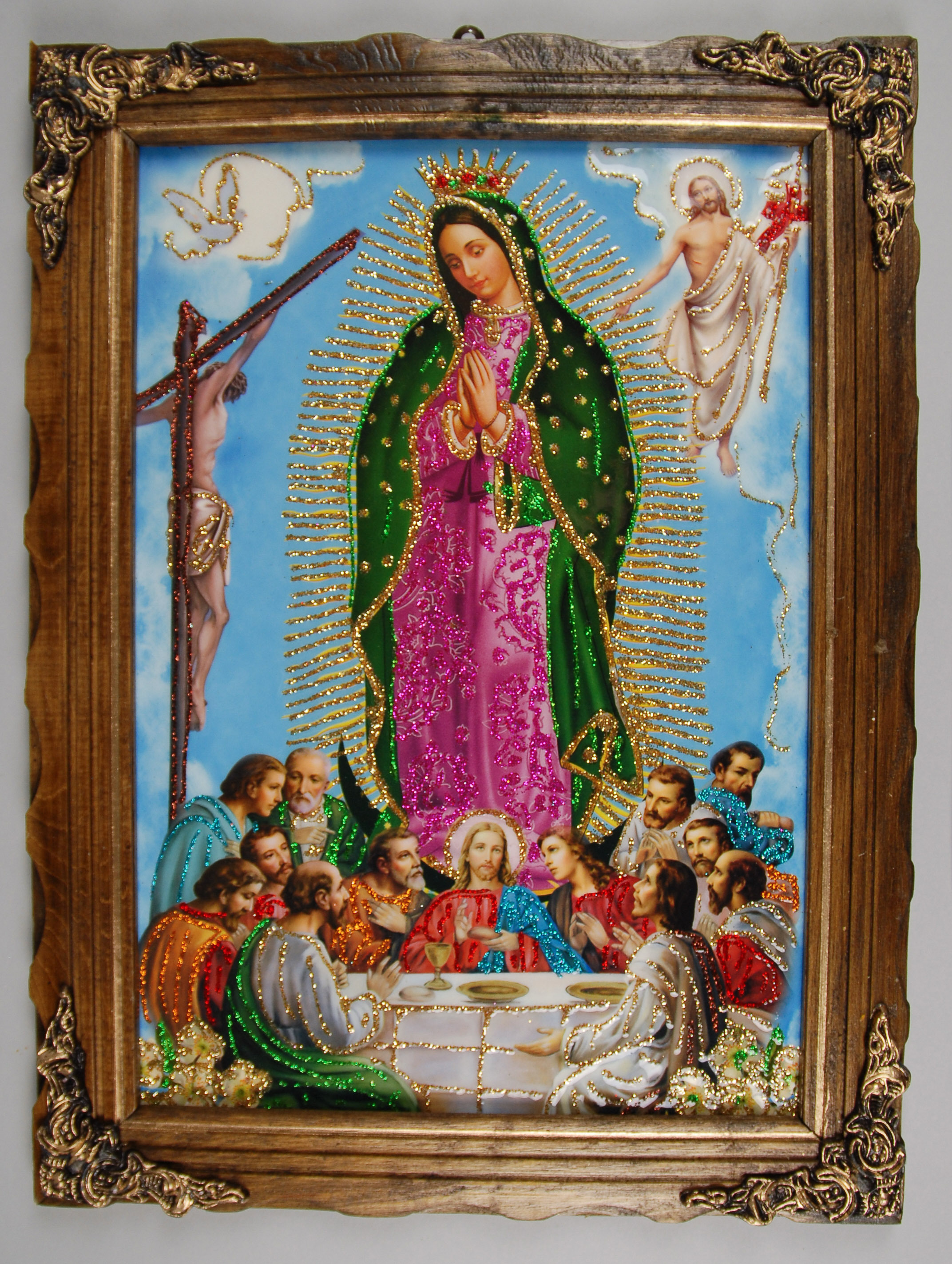 Die Jungfrau und das letzte Abendmahl mit Darstellung von Jesus am Kreuz