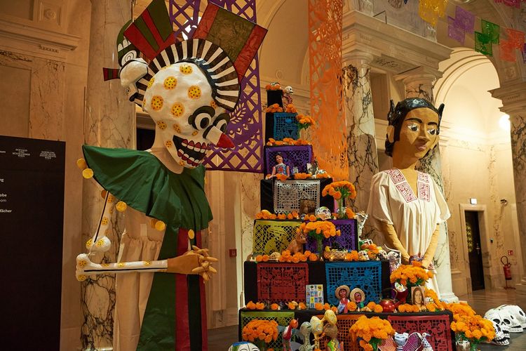 An verschiedenen Plätzen stehen Ofrendas – farbenfrohe Altäre, die die Liebe und Erinnerungen an jene Menschen symbolisieren, die ihren Weg in die Unterwelt, in das Reich des Todes angetreten haben. Auch in Wien begegnet Ihnen der Día de Muertos an mehreren Orten: Im Weltmuseum Wien, dem Österreichischen Lateinamerika-Institut und der Galerie LichTraum erwarten Sie Ausstellungen, bunte Altäre und zahlreiche Workshops, die das Herz und die Seele des Día de Muertos in all seinen Facetten zum Ausdruck bringen.